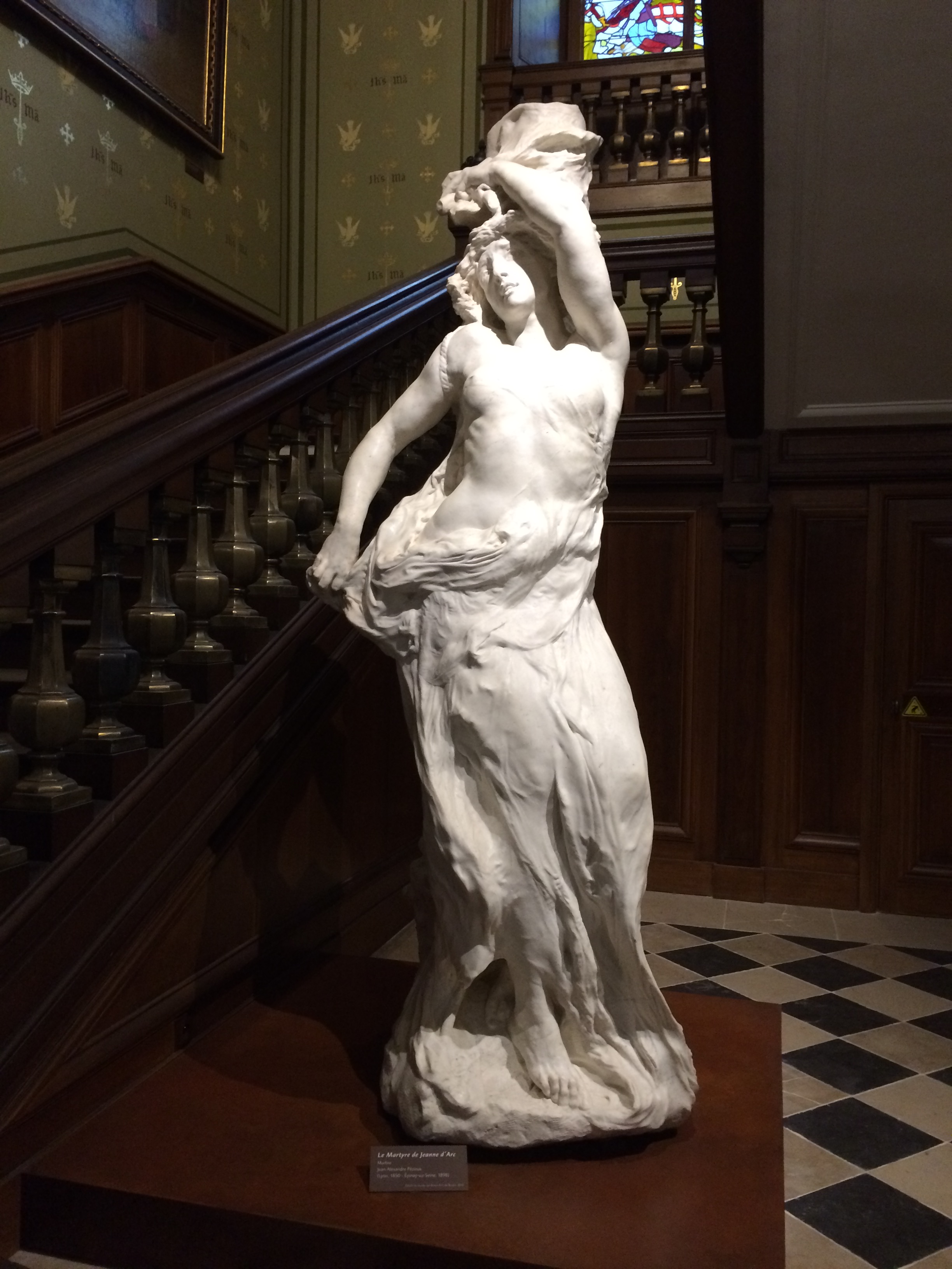 It is hard to overstate how important Jeanne is to French history and even perhaps French identity. She was a young girl who cross-dressed and led troops into battle in the 15th century during the 100 Years War after receiving visions from two saints instructing her to act as she did. Sadly she was betrayed and burned at the stake by a French court under English control right outside the Rouen Cathedral. She was canonized in 1920 but has been used many times throughout the intervening centuries as a symbol of the French people.