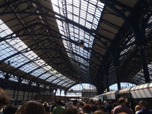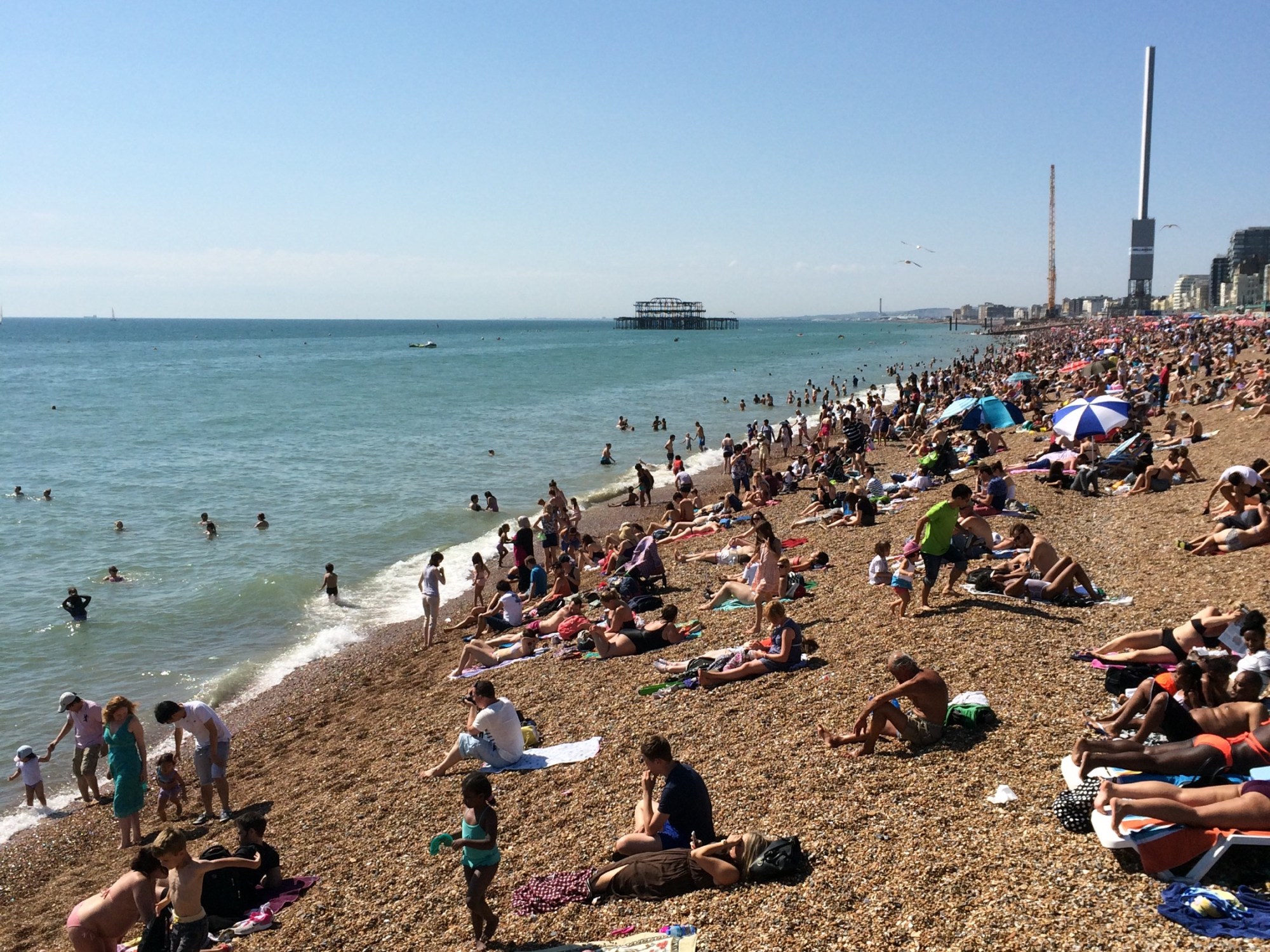 We took the train from Victoria Station and scored seats on the train. I think every person in Britain went to Brighton to enjoy the nice weather, so the train was standing-room-only by the time everyone had boarded. It’s a good thing we had seats because it’s hard to play cards while standing on a moving train. Priorities, you know.