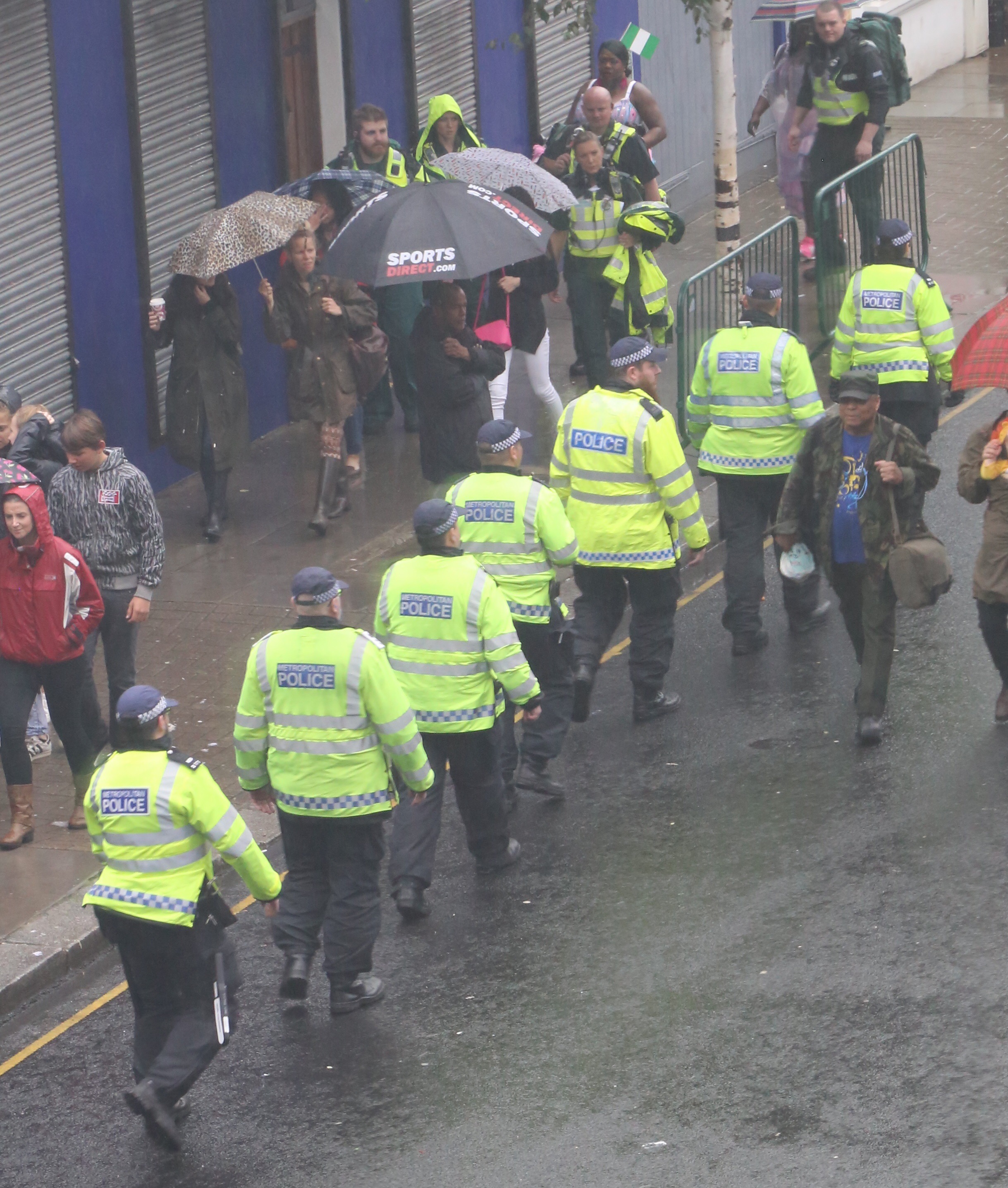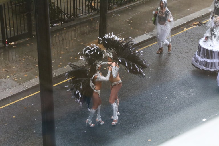 In the days leading up to the event, the entire area around the Carnival route did the city version of battening down the hatches: rerouting buses & Tube stations, fencing off private areas, bringing in extra security, and setting up public restrooms. It was clear they were preparing for a large display of public drunkeness, and the Carnival goers did not disappoint. I was impressed with the increased security in my building, especially considering the huge mosh pit right outside our front door.  I was also impressed with the Westminster street cleaners – the massive mess left by Day 1 partiers was nowhere in evidence at the crack of dawn on Day 2, no small feat.