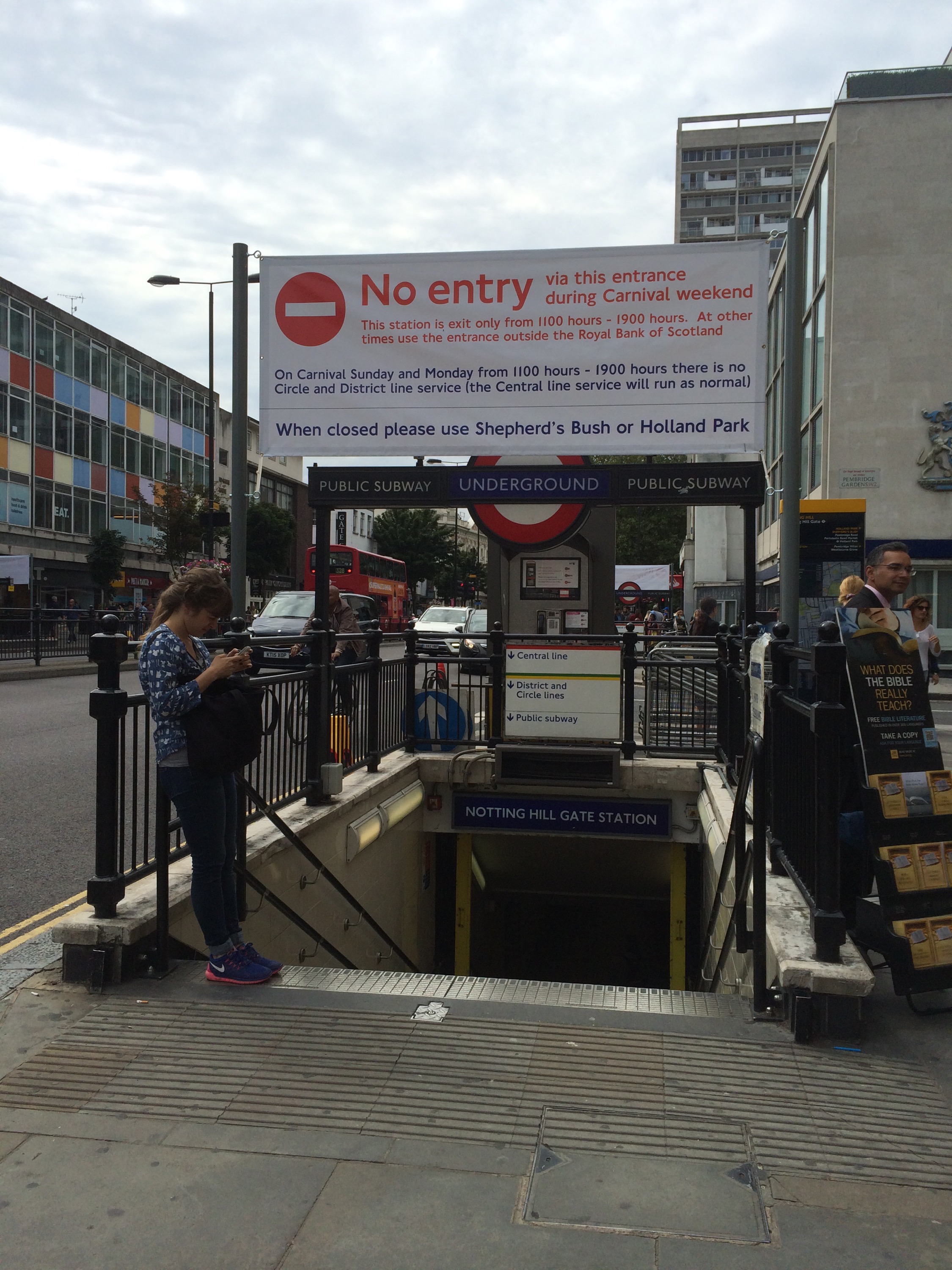 Sign at the Notting Hill Tube Station two days before the Carnival started