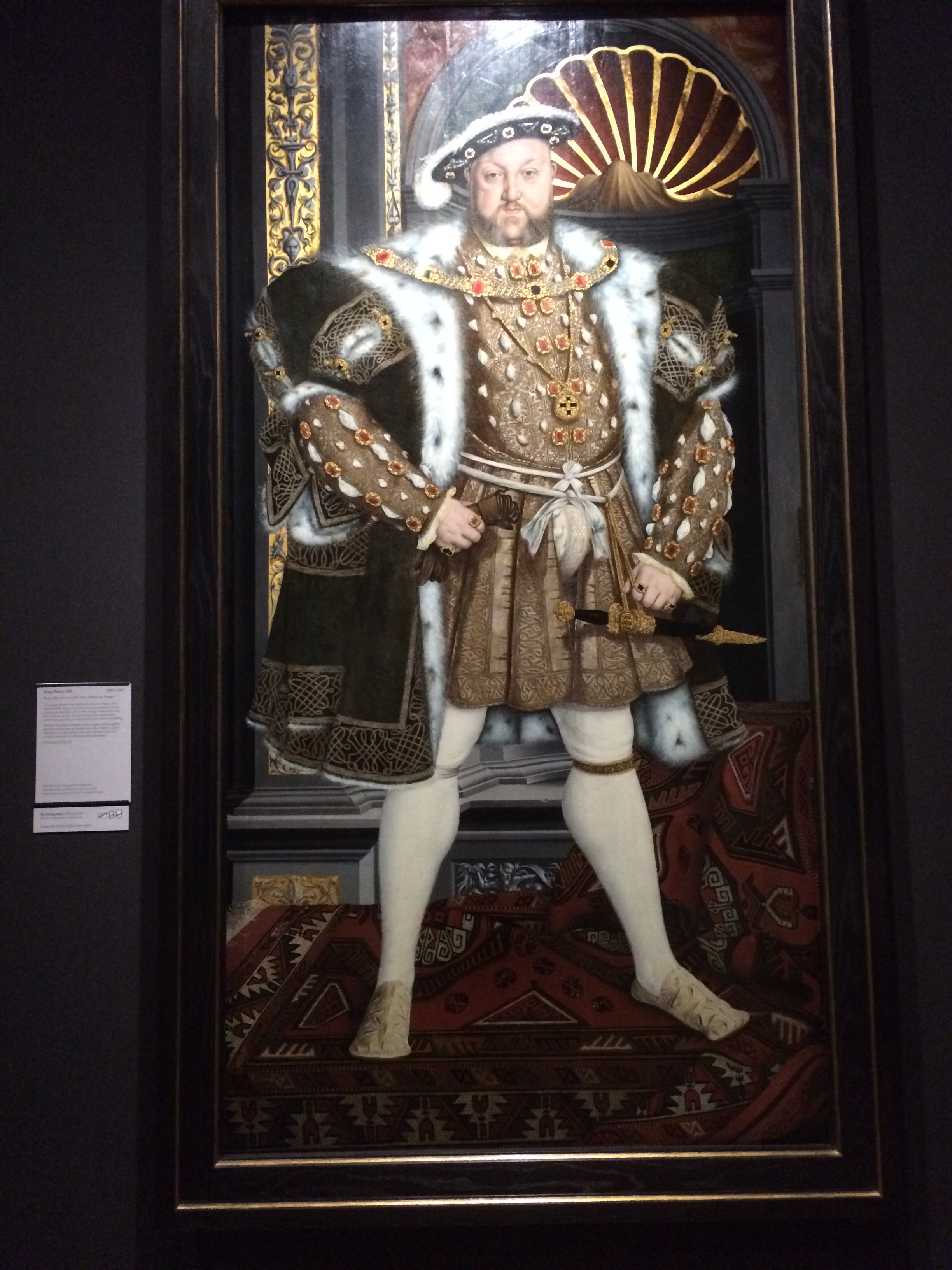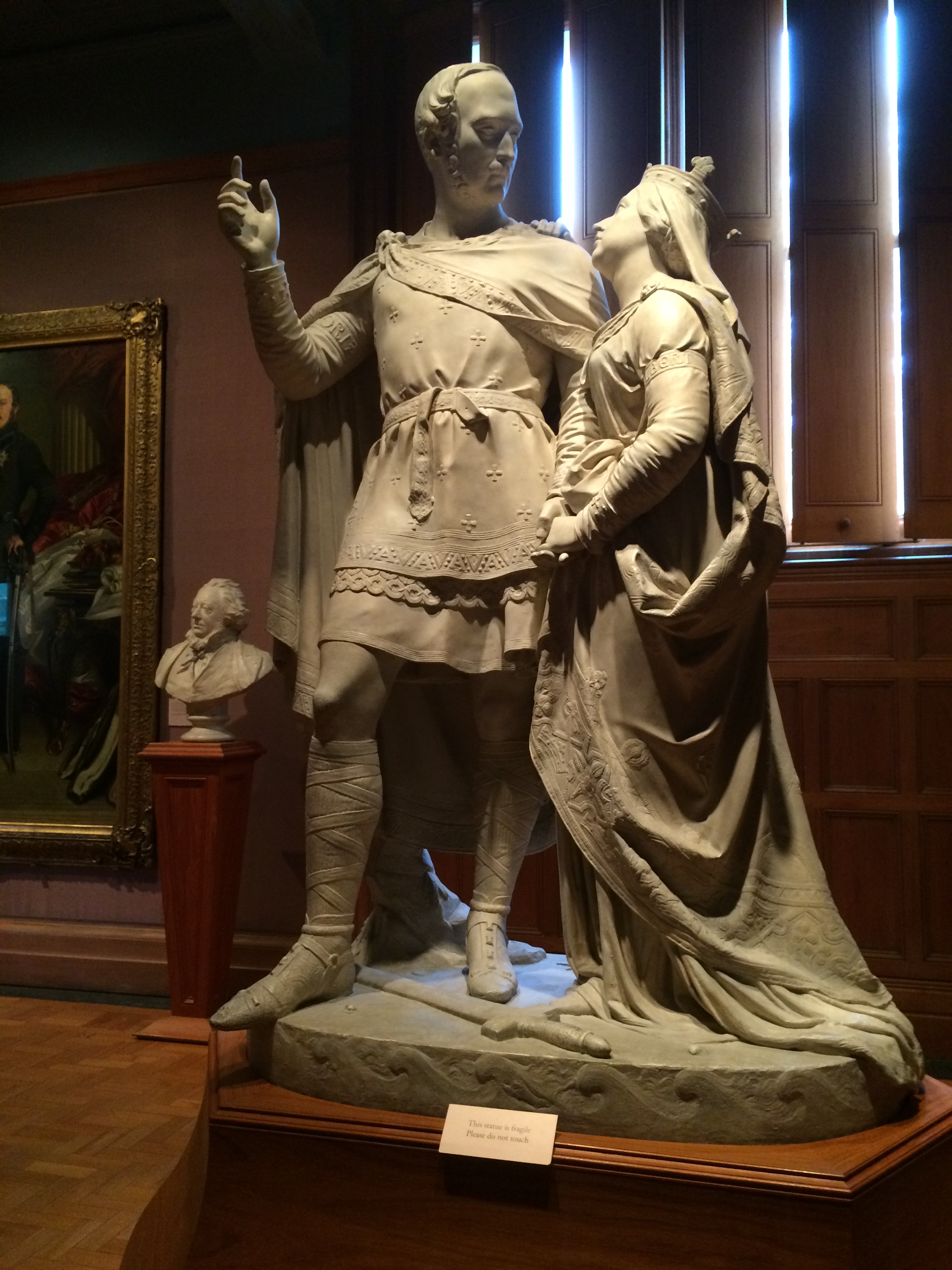 Elizabeth I by an unknown English artistKing Edward VI by the workshop associated with Master John. This is Henry VIII’s only legitimate son. Edward died when he was 16.Henry VIII by an unknown artist after Hans Holbein the YoungerHenry VIII and Anne Boleyn by an unknown artistThree electrotypes of effigies: Lady Margaret Beaufort (Henry VII’s mother), Edward, the Black Prince (of Wales), King Edward III, all by Elkington & Co.Sir Edwin Henry Landseer by John Ballantyne – Landseer is making one of the lions that now stands in Trafalgar SquareFor reference, here’s one of the four completed lions.T.S. Eliot by Patrick Heron. I love how England claims him as their own. He was born in St. Louis, y’all.Queen Victoria – painting by Sir George Hayter and sculpture by Sir Francis ChantreyThis rather bizarre sculpture by William Theed is of Prince Albert and Queen Victoria. They are wearing traditional Anglo-Saxon outfits to emphasize their German heritage. Bet they had to throw a blanket over this one about 20 years later.Robert Burns by Alexander NasmythLord Byron by Thomas PhillipsL-R: Charles Cornwallis, 1st Marquess of Cornwallis by Thomas Gainsborough and George Washington after Gilbert Stuart. The placement of these two paintings made me laugh out loud – Cornwallis is so much smaller than Washington. Wonder what we’d see here if we hadn’t won the Revolution.Queen Anne I by Michael Dahl. Anne was the last of the Stuart monarchs – none of her 18 children lived to succeed her.Flora McDonald by Richard Wilson. Flora famously smuggled Bonnie Prince Charlie away from the Culloden battlefield by dressing him in her clothes and thereby getting him to the Isle of Skye and out of the country. She spent 5 years in an English prison for this act of bravery but then became quite popular in London society.Charles Edward Stuart more commonly known as “Bonnie Prince Charlie” by Louis Gabriel Blanchet. I can only assume the hundreds of Highlanders who fought and died for him at Culloden Moor never actually saw him in person. Of course, that battle ended his hopes for reclaiming the throne of Scotland and England forever and was essentially the end of the Highland way of life.Sir Walter Raleigh by an unknown English artist. Supposedly his wife, Elizabeth Throckmorton Raleigh was so devastated by his death that she carried his severed head dipped in tar around in her purse for the rest of her life. Raleigh and Throckmorton defied Elizabeth I to marry in secret. She was one of the queen’s handmaidens and required the queen’s permission to marry.
