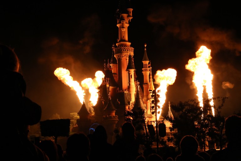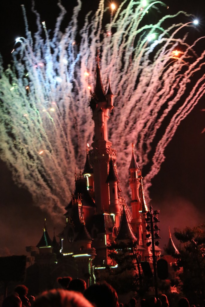 Disney parks are famous for their productions: parades, shows, and nighttime fireworks. The goal is to transport you into their stories and make the illusion real. Disneyland Paris is no exception in that regard. We caught the afternoon parade in the main park and of course the final show of the night – the fireworks extravaganza.