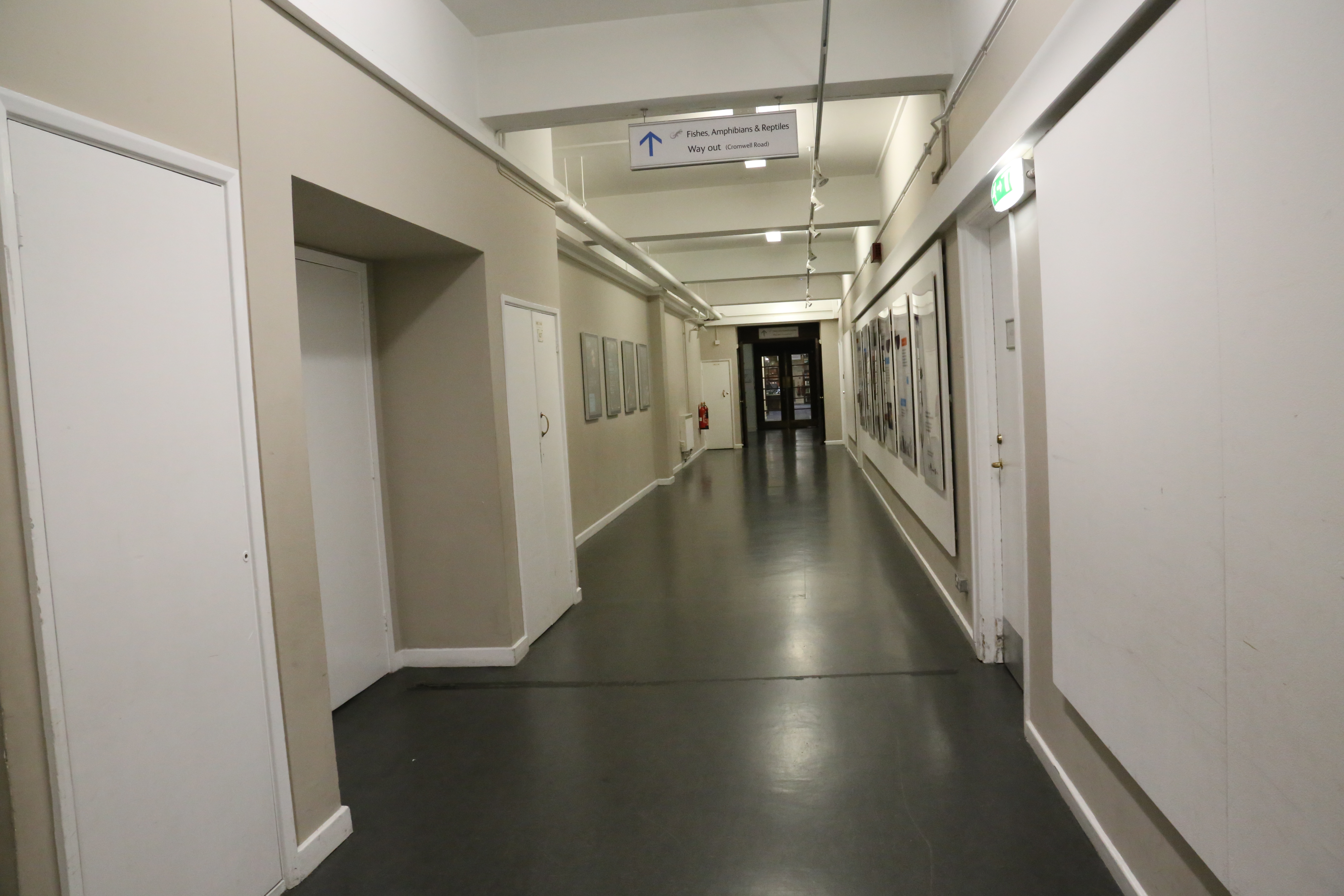 But as we wandered around, we discovered a new wing with the curious addition of a giant cocoon with exhibit space inside. This annex also houses many working scientific departments, all behind giant glass walls, making me wonder how much these working professionals appreciate being the subject of intense observation by school children and other tourists. Rather puts the shoe on the other foot. Wedged between these two opposite architectural styles were also very ordinary-looking hallways. As I said, the museum is a series of contrasts.