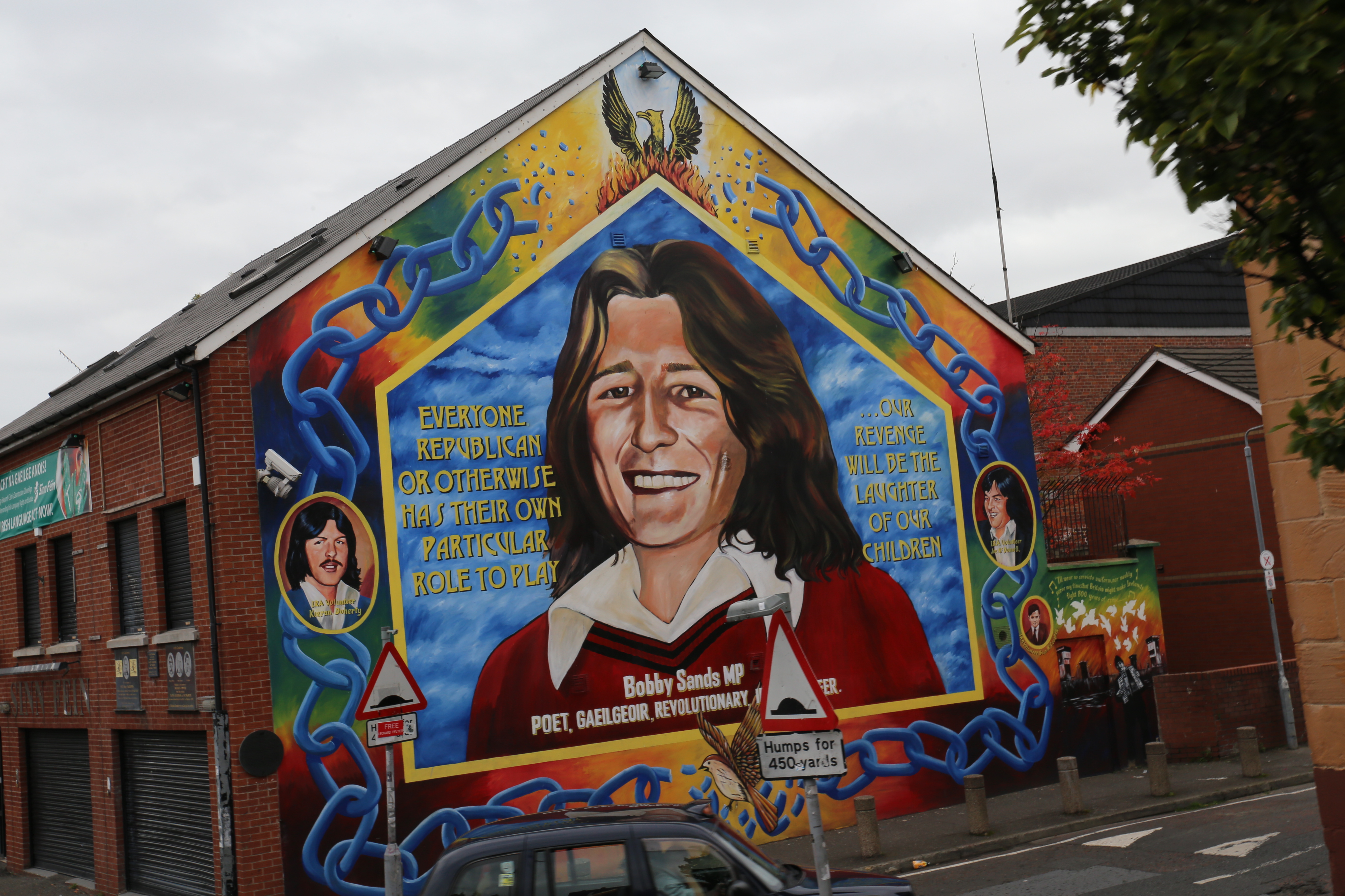 Bobby Sands mural on Falls Rd. He died during a hunger strike in British prison. He was also elected as a Member of Parliament just before his death.