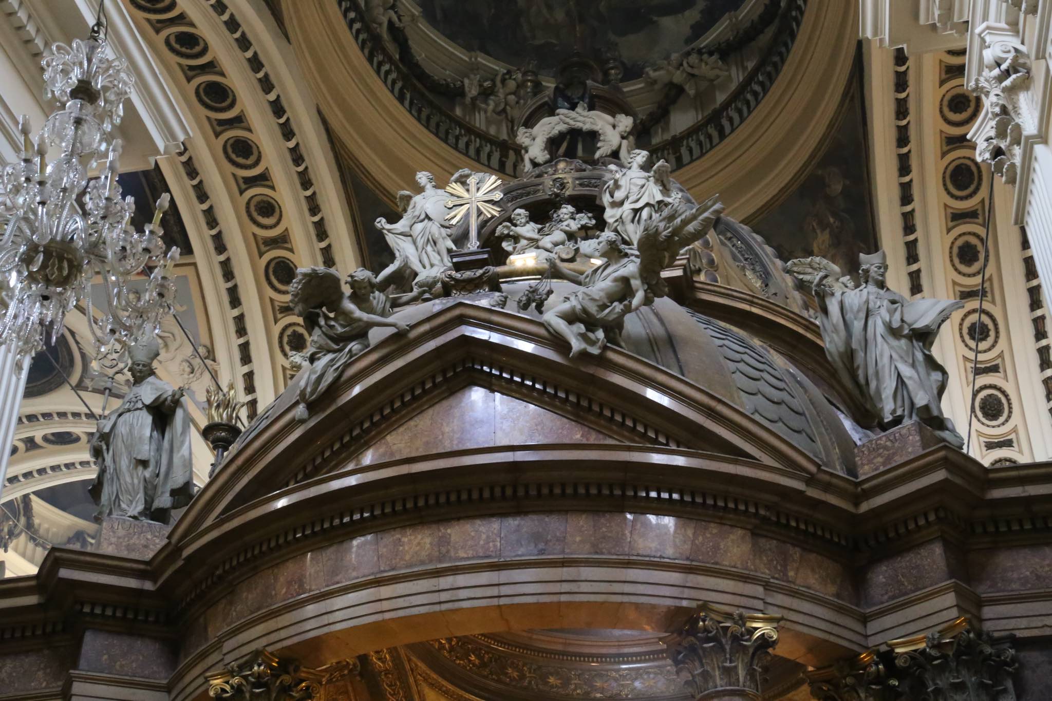 One of several altars in the Basilica One of the altars in the Basilica – the lady on her column is in there.So we did. It started when I told him it was my first visit to Spain… oh boy. He informed me I had not come to Spain but indeed to Catalonia. He insisted that they would vote up their independence soon, and we talked about democracy: the Catalonian efforts to secede from Spain have been peaceful and orderly, if technically illegal to date. He commented that in the States he’d heard that the coasts were very cosmopolitan, but the middle of the country was different and less educated. I explained that this is not really the case and told him I’m from the middle of the country, prompting a sheepish grin from behind the desk. At one point, he Wikipedia’d St. Louis and was enthusiastic to learn that you can take an elevator to the top of the Arch. So it goes without saying that morning came much earlier than I was expecting.