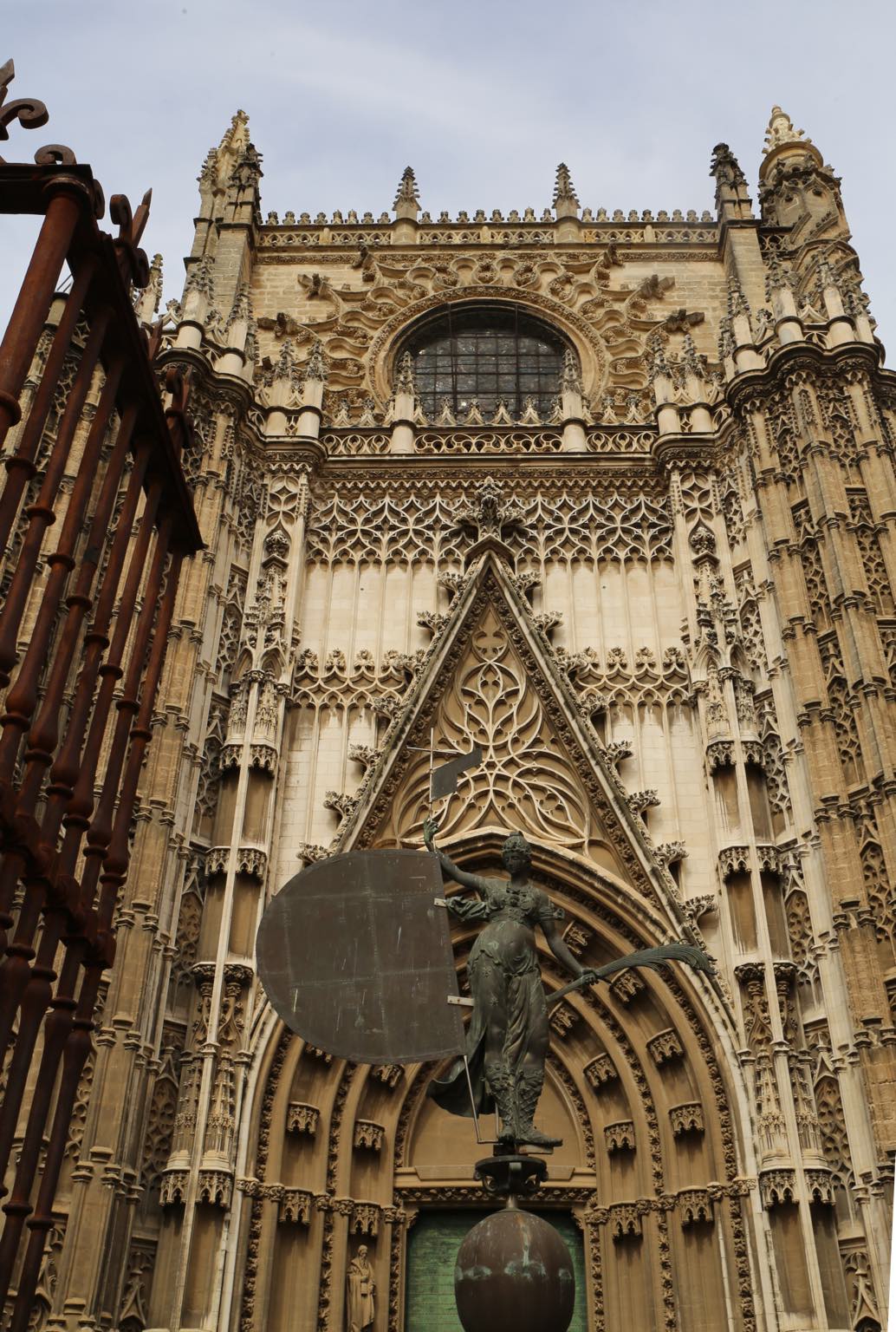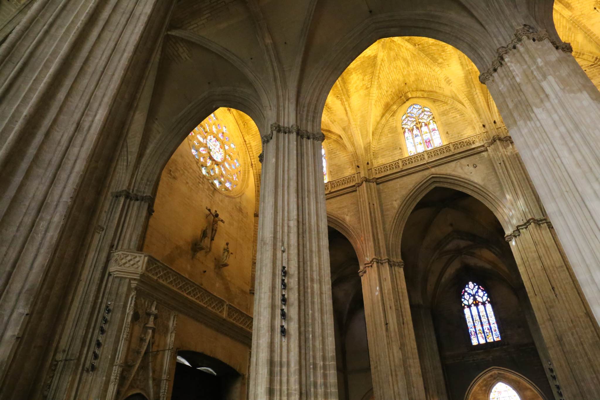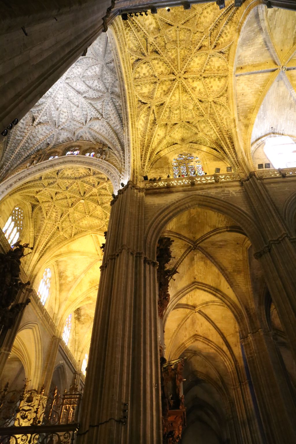 The Seville Cathedral, the Cathedral of St. Mary of the See, is massive, so massive in fact that it’s been ranked the third largest cathedral in the world and the largest Gothic cathedral. It was built on the site of Seville’s main Mosque, and the bell tower is the converted minaret from that mosque. The mosque was begun in 1184, but the mosque was consecrated as a cathedral in 1248 during the Reconquista when Seville was captured by Christian Ferdinand III. Construction on the Gothic cathedral began in 1434 and continued until the early 16th century. Later Renaissance and Baroque sections would also be added throughout the 16th-18th centuries.