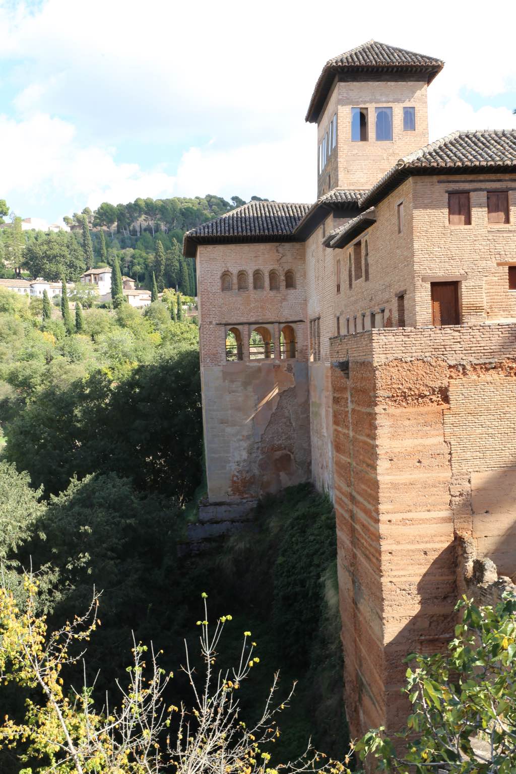 Exterior view of part of the AlhambraArabic language is found throughout the complex in the decor on walls and arches.