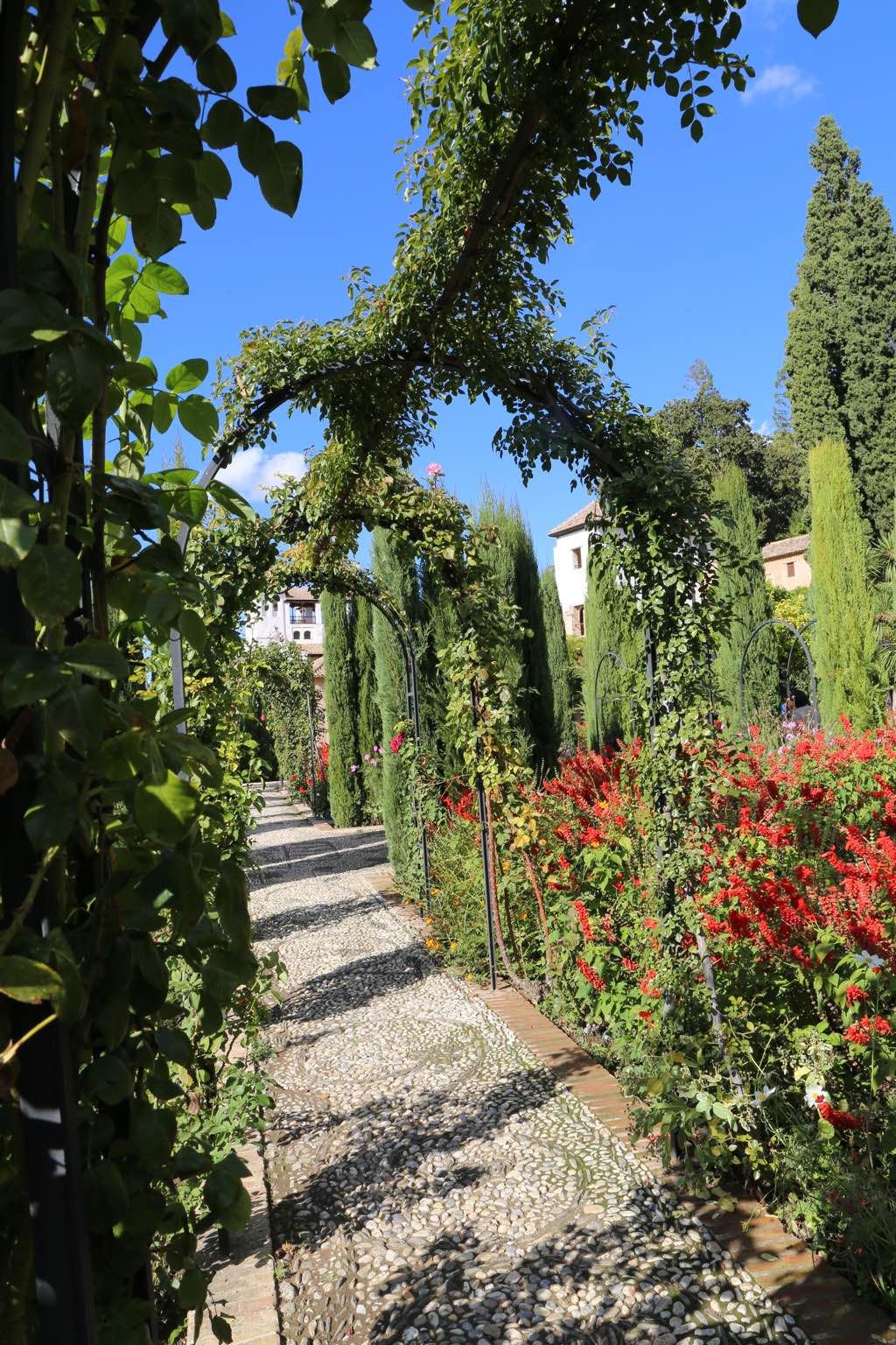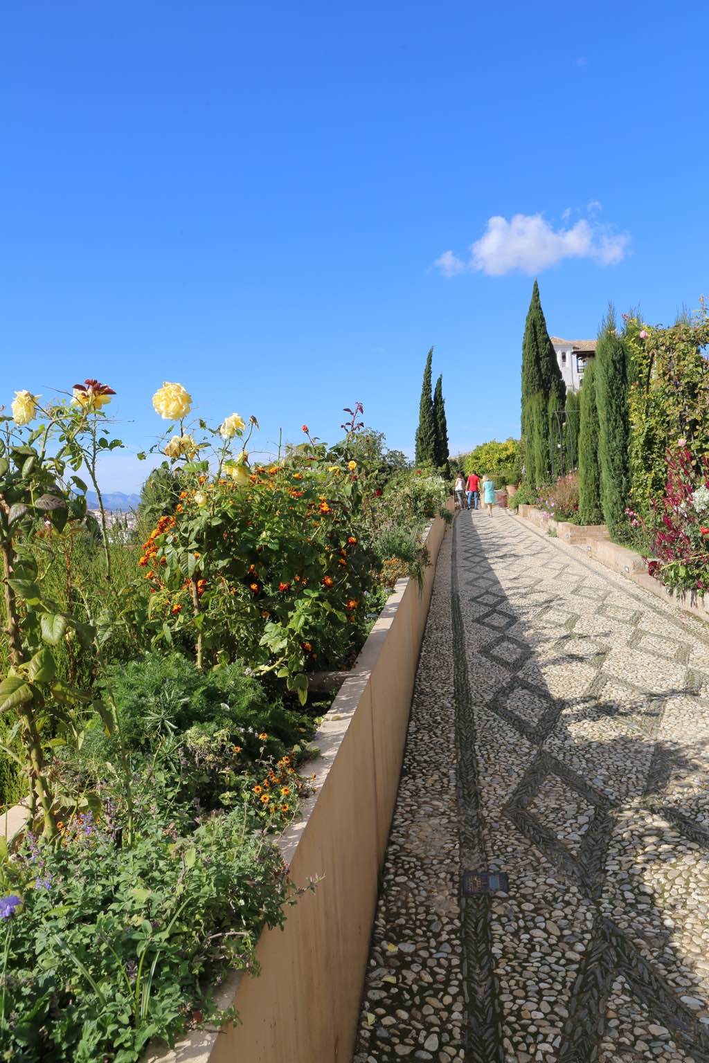 Up the hill from the Alhambra fortress are the summer palace and gardens of the Sultans of Granada, the Generalife. They were built in the 14th century. Because they’re closer to the mountains than the Alhambra, the temperature up here is a few degrees cooler. The smell of jasmine permeates the gardens as you wander through the ordered beds of plants. Enjoy a handful of pictures from my visit there.