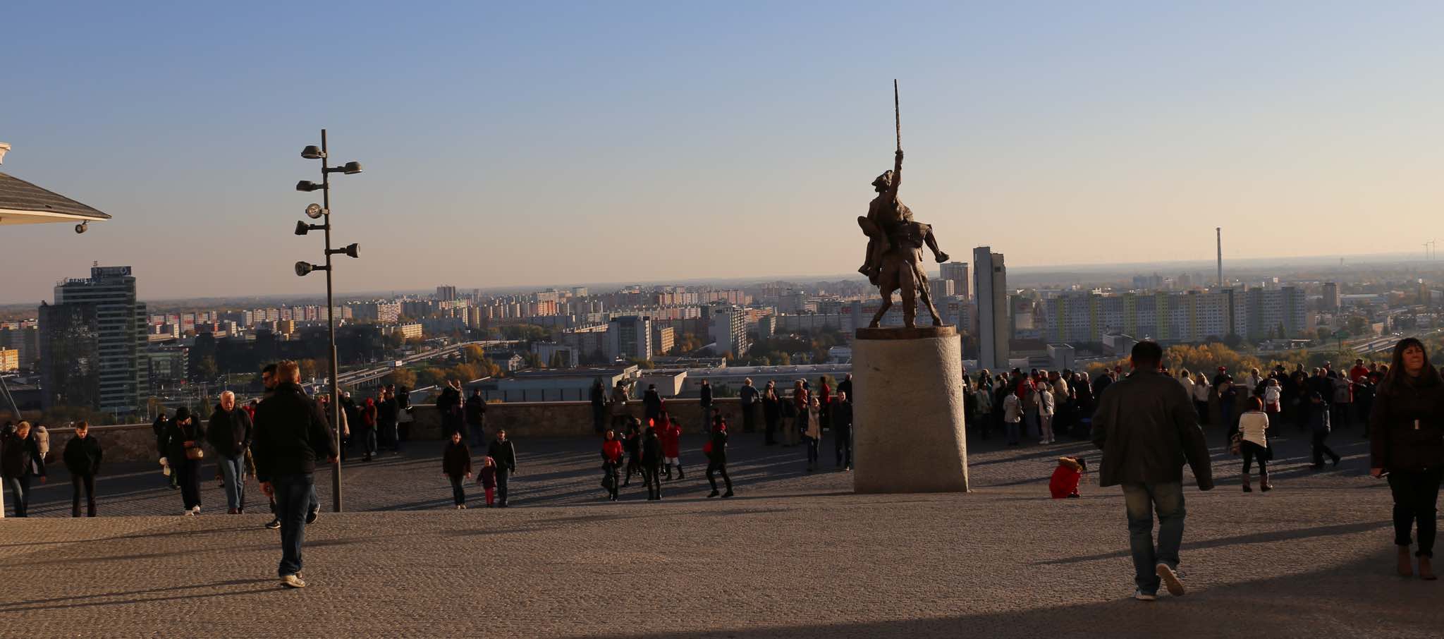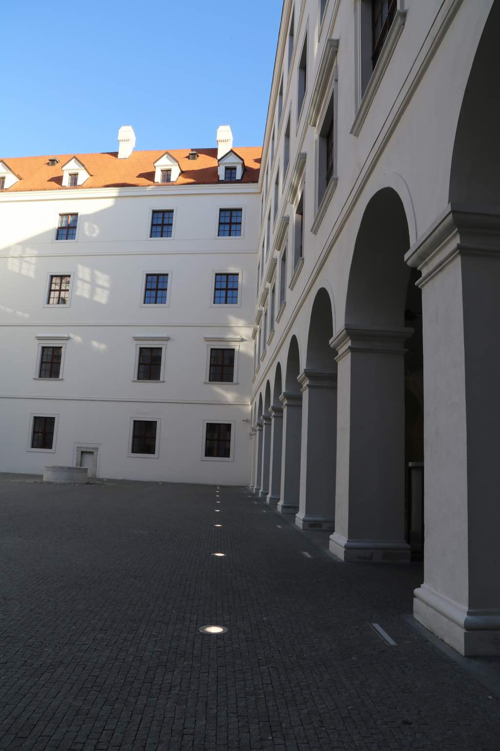 Part of our visit to Bratislava included a climb up to the fortress overlooking the city, Bratislava Castle. As you can see from the pictures yesterday and today, the views from the castle are spectacular – down to the Danube River and out across the city. Given the strategic importance of this spot, it’s been used for thousands of years by Celts and Romans and then the Slavs and Hungarians. This defensive position withstood invasions from both the Mongols and the Ottoman Turks. Construction on the castle we see today was begun in the 10th century and continued through the Middle Ages and Renaissance. Empress Maria Theresa in particular made improvements to the royal apartments in the 18th century – the white and gold sections of the palace were her contributions.