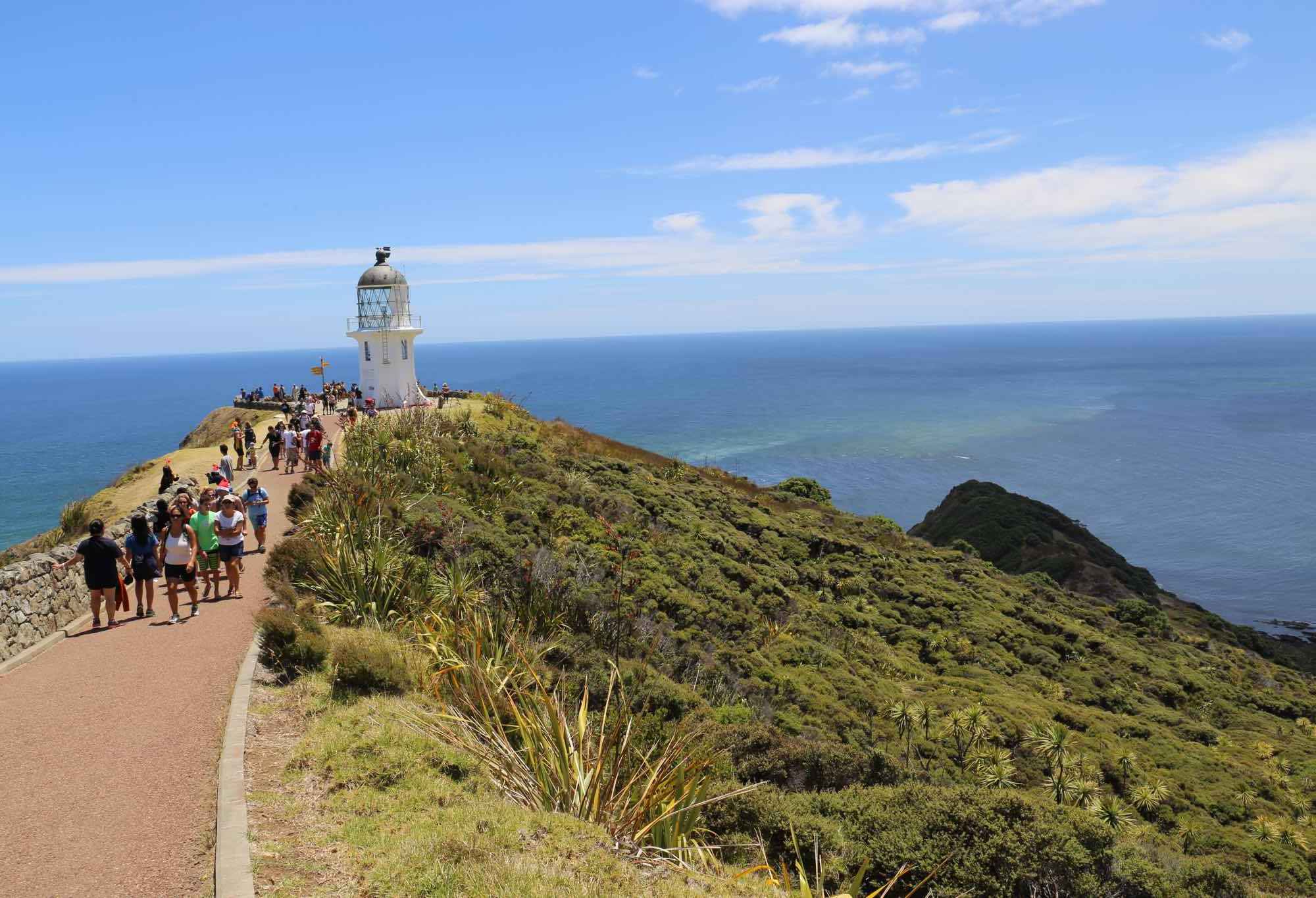 Cape Reinga Cape ReingaCape Reinga is the northern-most point of New Zealand and also where the Pacific Ocean meets the Tasman Sea. The Maori called it the place of the departing spirits, and it is a deeply spiritual place. When you arrive, you’re surrounded by beach and ocean views in every direction but can also walk down to the lighthouse to get even better views. Of course that’s what we did. As you walk along the path, the wind whips through with power appropriate to the majesty of the place.