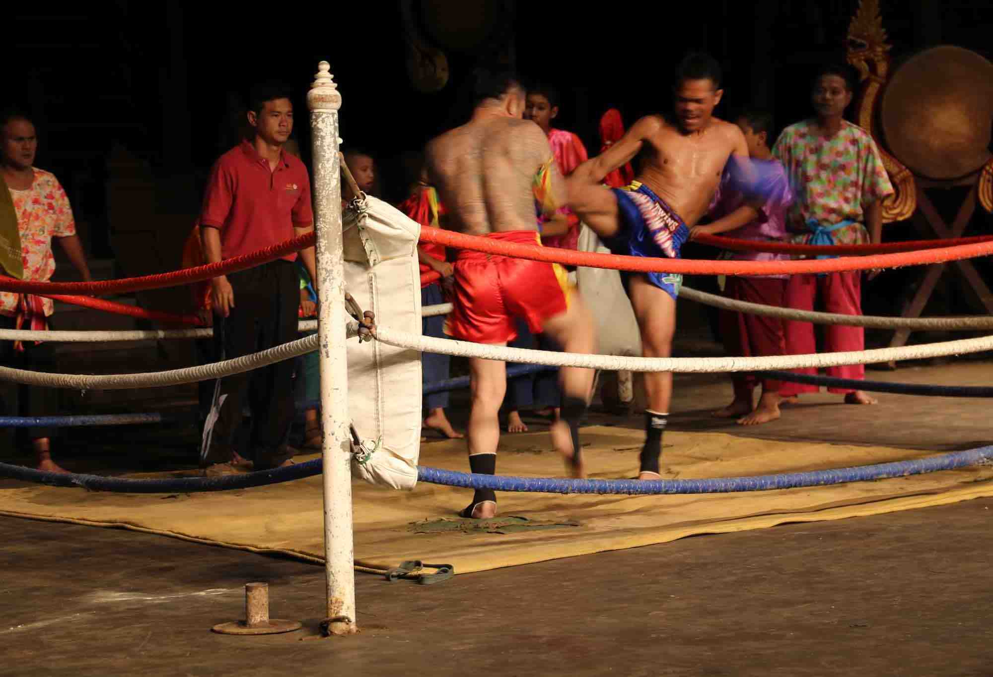 Thailand is famous for its Thai boxing or Muay Thai. As the title quote says, fists, elbows, knees and feet are used in hand-to-hand combat in this ancient martial art. Today, matches are fought in a boxing ring with five, 2-minute rounds. The cultural show at the Rose Garden Cultural Center included a full 2-round match that ended in a draw: both combatants won one round each.