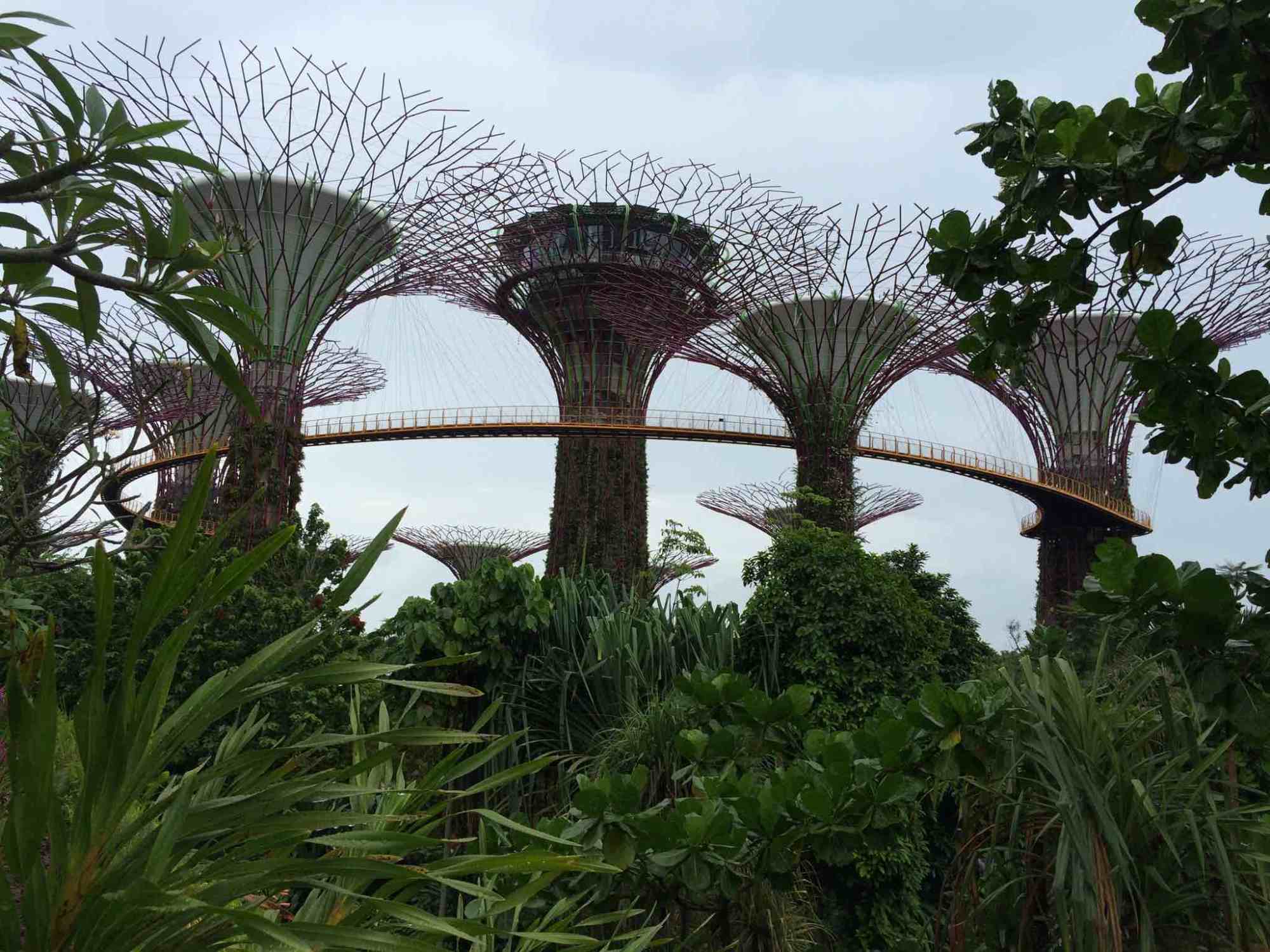 When I visited the Gardens by the Bay in Singapore, I spent some time wandering in the outdoor spaces at the park. The main feature of the gardens is also their most iconic: the Supertree Grove. The exterior of these massive structures contain vertical growing space for a wide variety of plants. One of the Supertrees also houses a restaurant at the top of the tree, so you can enjoy your dinner with a wonderful view across the gardens and Singapore’s city center. At night, the Supertrees host a magical light show, though unfortunately I was not able to see it myself due to the weather conditions during my visit.