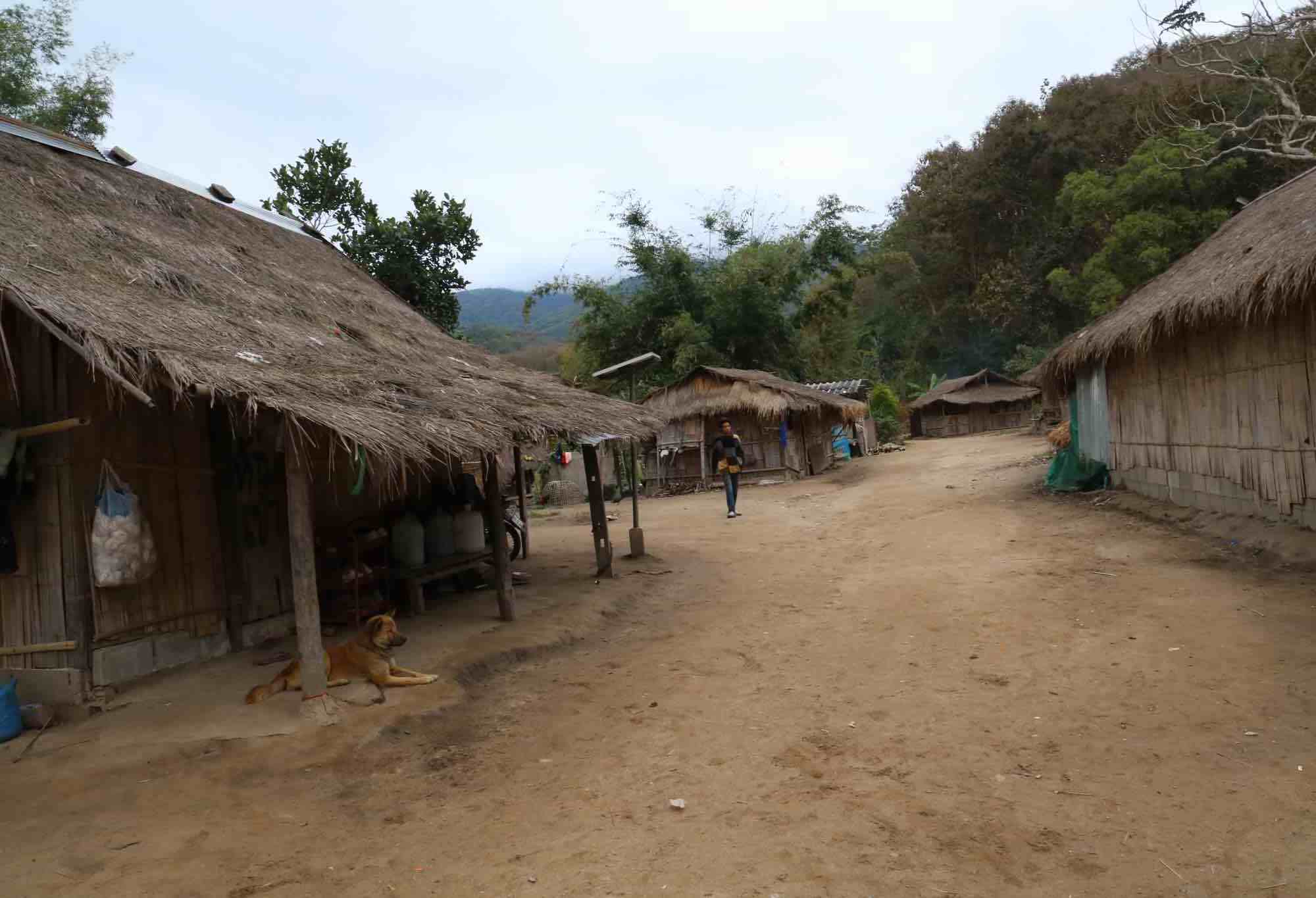 As I mentioned yesterday, our final stop on the Golden Triangle tour was to a Hill Tribe village. I’m a little conflicted about this part of the day. It’s common for tour groups to be taken to these villages, and often they include a visit to the Karen people, otherwise known as the long-neck people. You might have seen images: the women are fitted with ringed necklaces as teenagers, and their necks are elongated as additional rings are added until they reach adulthood. Then they will wear the necklace the rest of their lives. We had an option to pay extra to see the Karen people, but no one took up the offer. The whole thing felt a little awkward to me, though I imagine the tourist and market dollars are helpful to the tribe, assuming they get a cut.